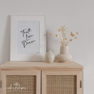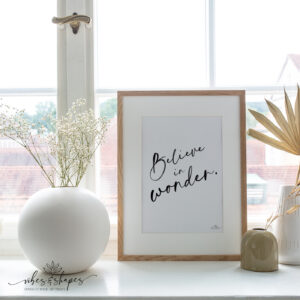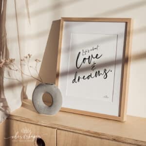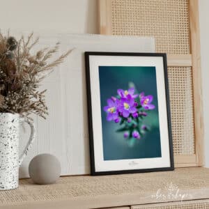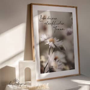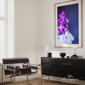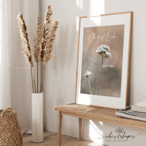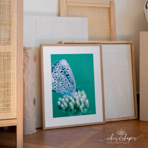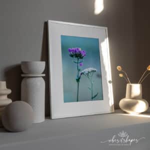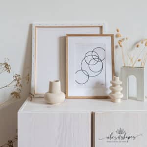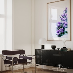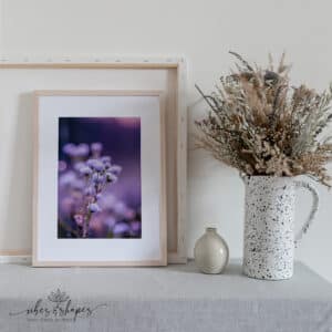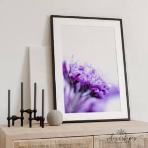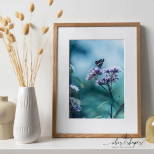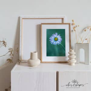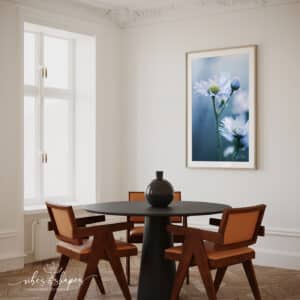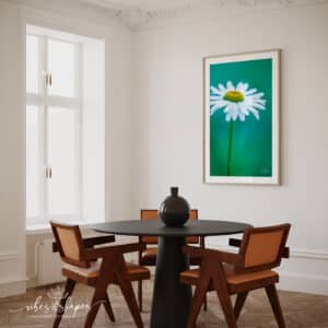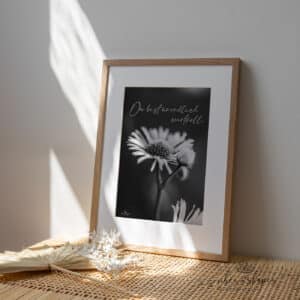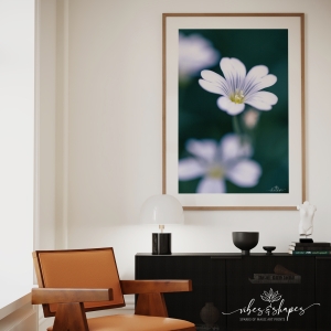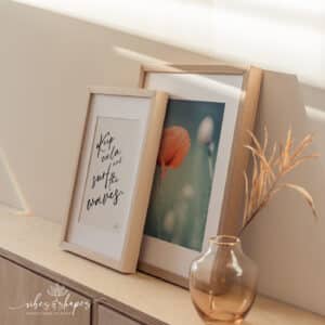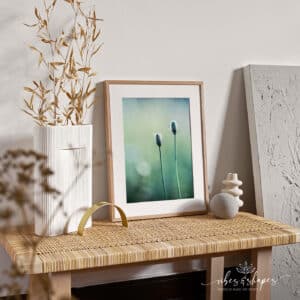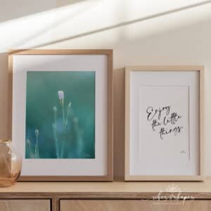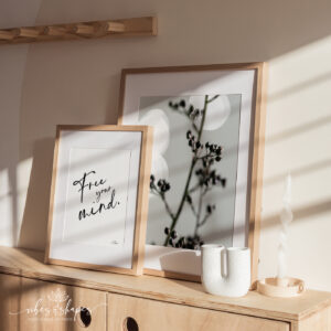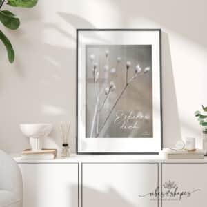 Kombiniere zauberhafte Naturfotografie Kunstdrucke mit schlichten Schwarz-Weiß Prints.